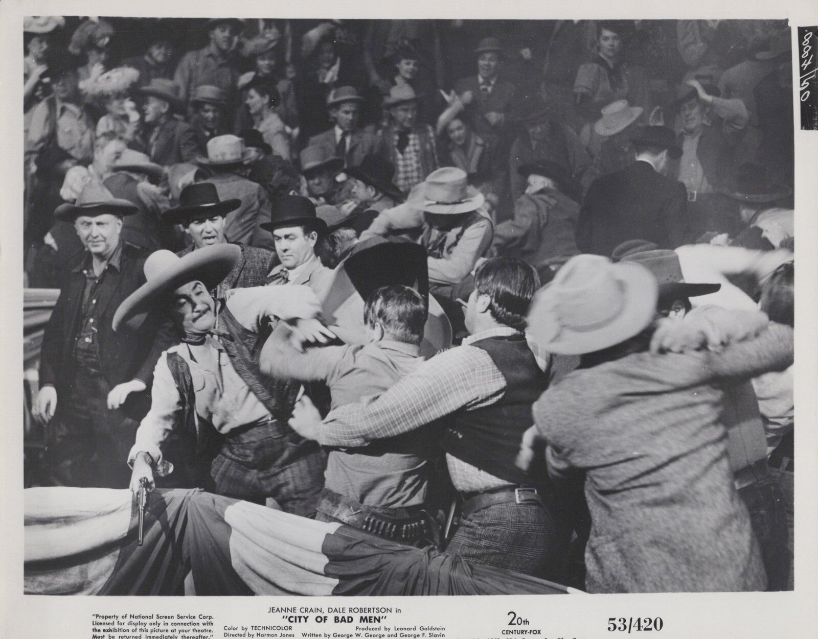 Step back into the world of classic Western cinema with this original 1953 photograph featuring Richard Boone and Dale Robertson in "City of Bad Men". This action-packed Western follows a suspenseful storyline where outlaws, rivalries, and honor take center stage in a town preparing for a big prizefight. Boone and Robertson deliver unforgettable performances, capturing the rugged spirit and tension of the Old West. This rare photo is a must-have for fans of 1950s Westerns and Hollywood’s Golden Age.