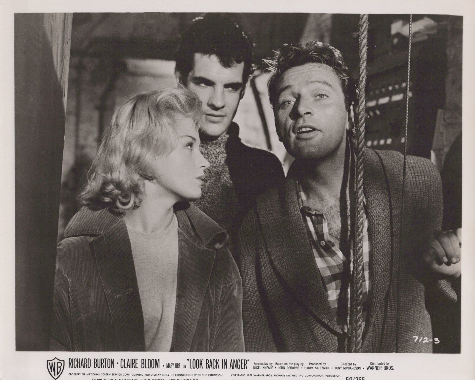 Keywords: Richard Burton, Mary Ure, Look Back in Anger 1959, Vintage British film photo, Classic drama, 1950s cinema, Richard Burton collectible, Mary Ure rare photo, John Osborne, British New Wave, Kitchen sink realism, Rare film photography, Iconic movie memorabilia.