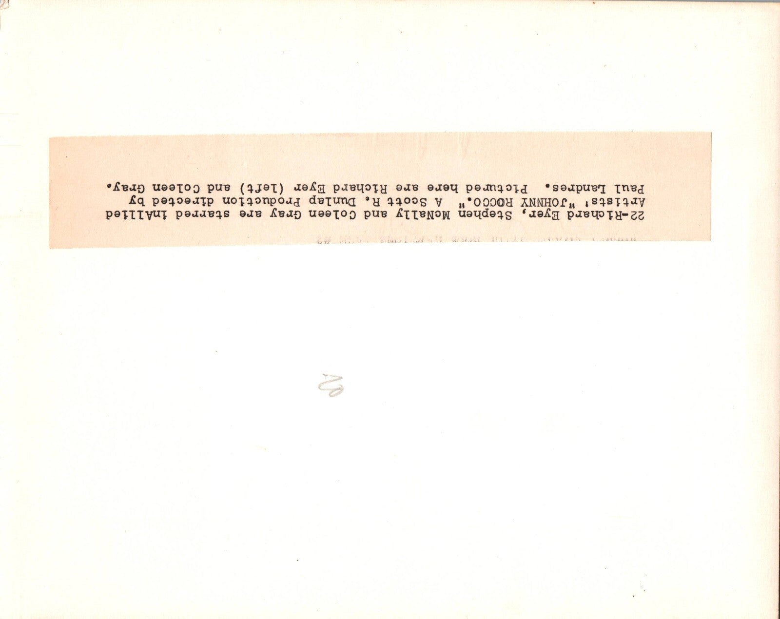 Capture the essence of Hollywood's golden era with this vintage photograph featuring Richard Eyer and Coleen Gray in "Johnny Rocco" from 1958. The 10 x 8 inch gelatin-silver print showcases the iconic actors in black and white, adding to its timeless appeal. This original photograph is unframed and has a glossy finish, making it the perfect addition to any collection of Hollywood memorabilia. The photograph is a single piece and is perfect for antique collectors who want to add a piece of Hollywood history to their collection. The image features the actors in a scene from the movie, highlighting their talent and adding to the value of this piece. This photograph is a must-have for fans of classic Hollywood movies and is sure to be a conversation starter in any setting.