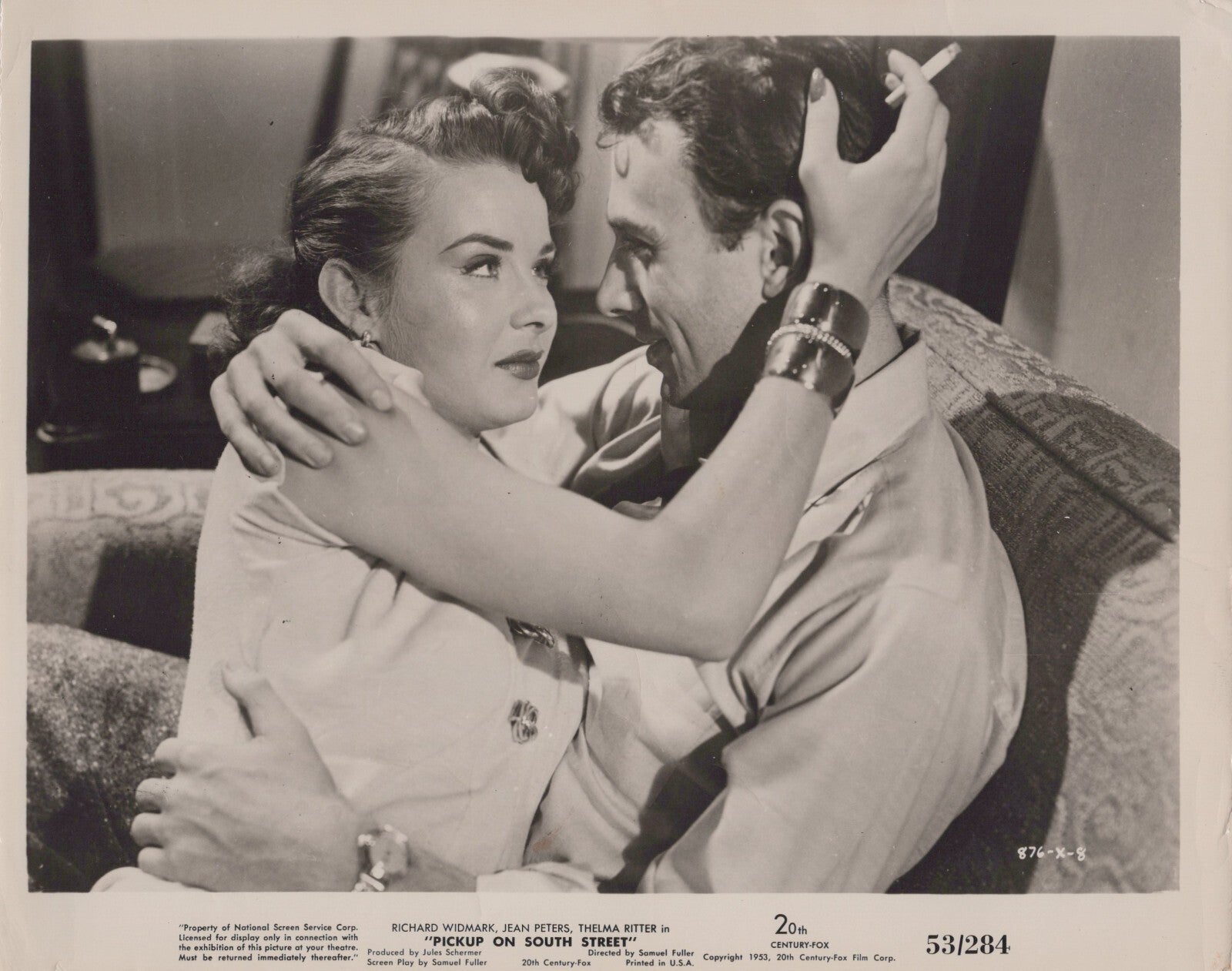 Richard Kiley Jean Peters Pickup on South Street 1953, vintage film still, 1950s noir.