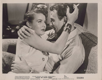 This rare film still is a must-have for noir collectors, classic movie buffs, and fans of Richard Kiley and Jean Peters. Whether you're passionate about 1950s crime dramas or building a collection of vintage noir photography, this iconic image from Pickup on South Street is sure to stand out in any collection.