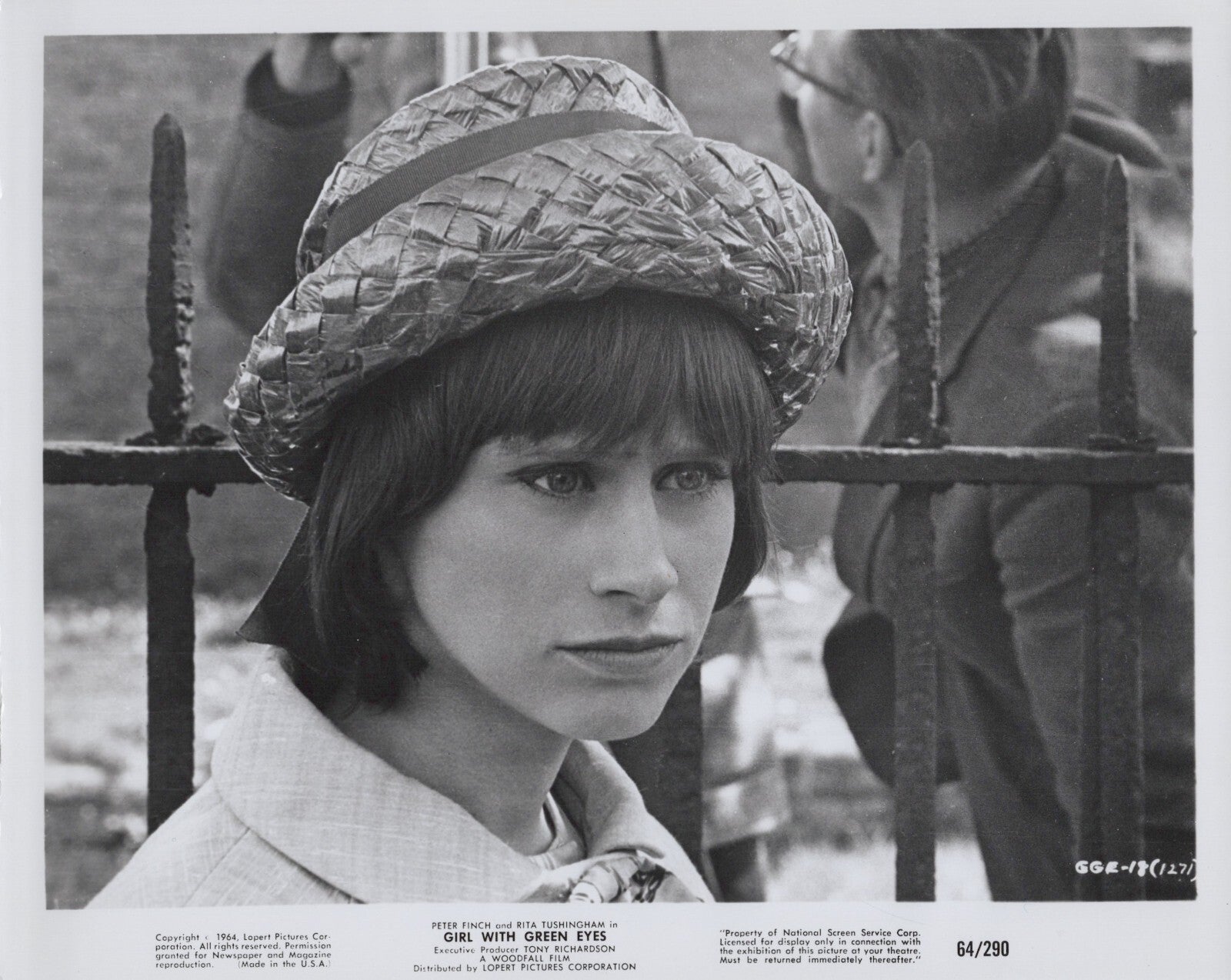 This vintage photograph features Rita Tushingham in her role as a green-eyed girl in the 1964 film "Girl with Green Eyes". The image is printed on black and white paper in glossy finish, with a size of 8 x 10 inches. It is an original production technique using gelatin-silver, and the photograph is unframed.