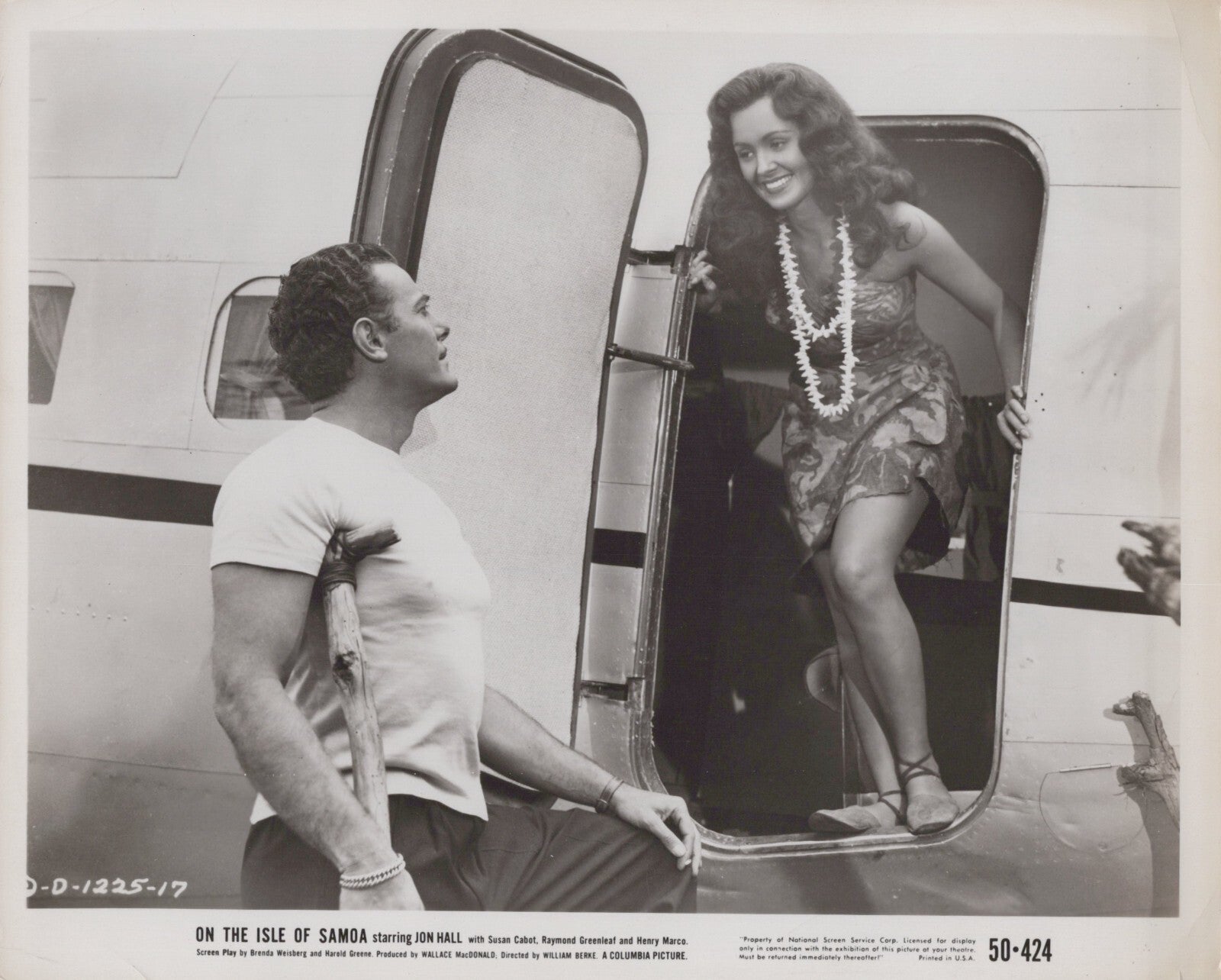 This vintage photograph captures the beautiful actress Susan Cabot and the talented actor Jon Hall in their iconic roles on the island of Samoa. The image measures 8 x 10 inches and is printed on high-quality paper in glossy finish.