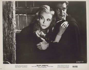 This vintage photograph features Susy Andersen and Mario Bava in Black Sabbath (1964). The image is printed on high-quality paper in glossy finish, with a size of 8 x 10 inches. The photograph is an original production technique from 1964, and is unframed.